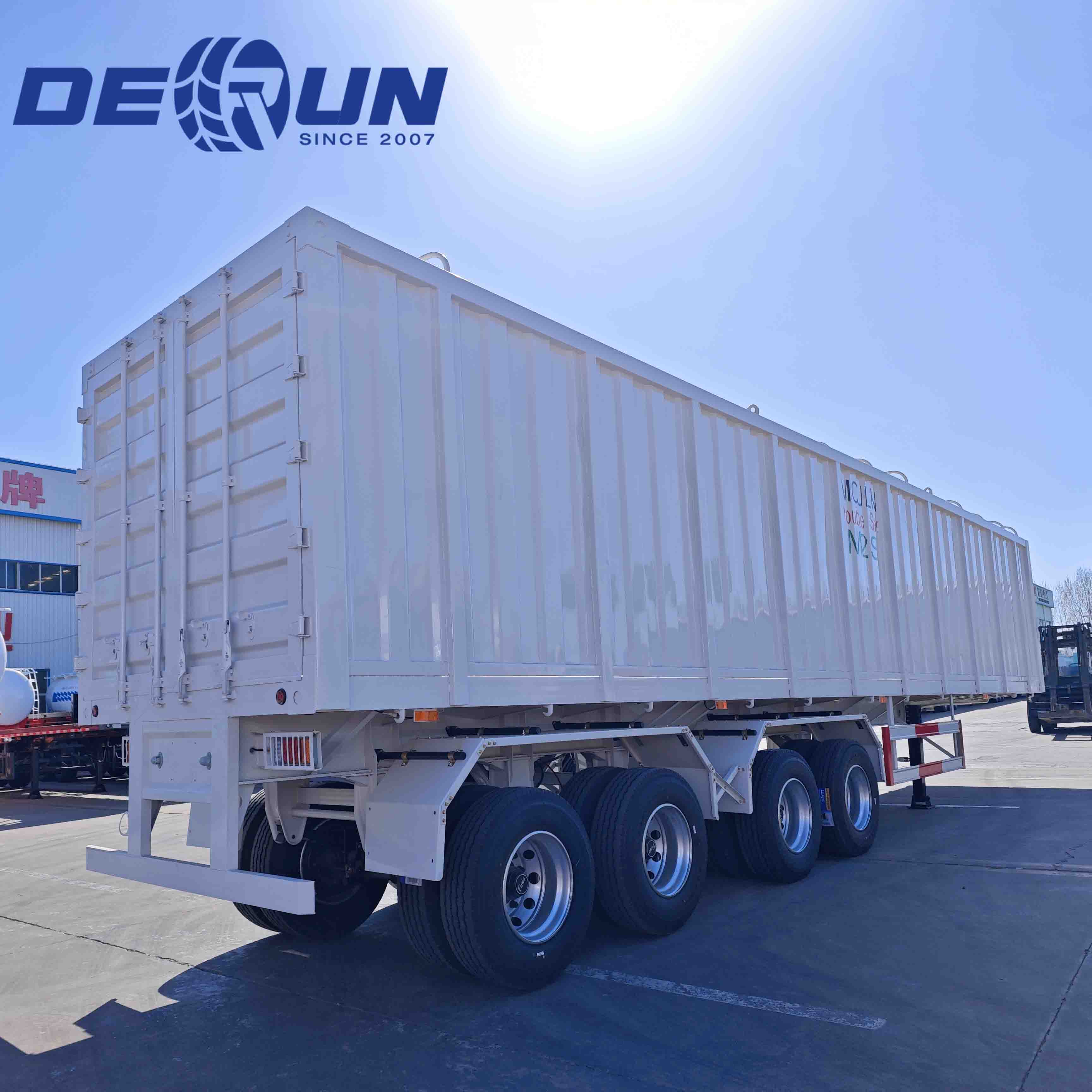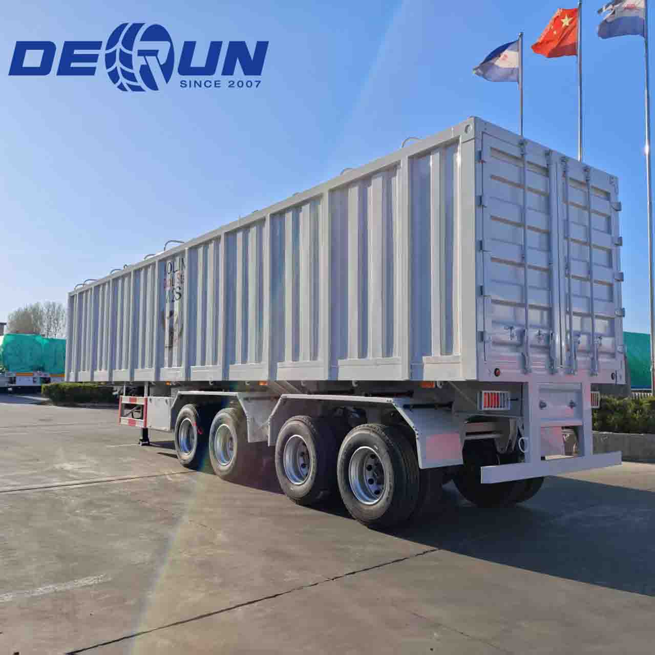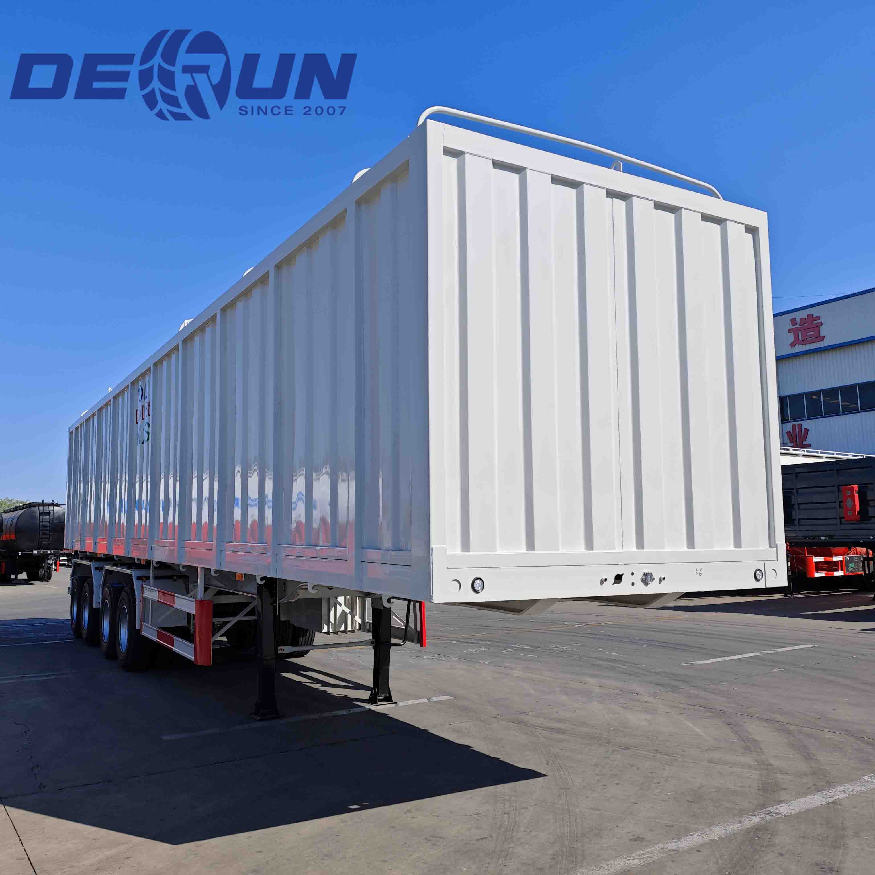 Czteropisowy pudełko-trailler Derun jest ustawiony jako „wysokiej wartości wszechstronnego obrońcy ładunków”. Czteroosowa konstrukcja pozwala przyczepowi mieć większą wagę w obrębie masy brutto regulacyjnej 49 ton, umożliwiając jednostkę ciągnięcia łatwiejsze holowanie ciągnika i zmniejszenie zużycia paliwa o około 8%. Górny system baldachimu jest o 300 kg lżejszy niż tradycyjne twarde dachy. Cały pojazd minął deszcz, spray solny i testy cyklu o wysokiej/niskiej temperaturze, zapewniając niezawodne działanie w środowiskach od -30 ° C do 60 ° C.