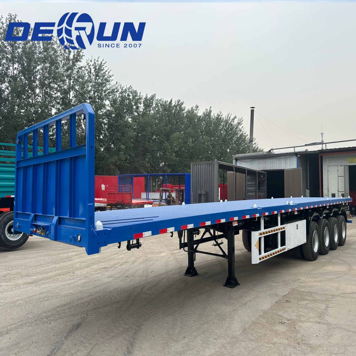 W przypadku 4-osi z płaską przyczepą jest to rodzaj przyczepy o wysokiej wydajności, o wysokiej zawartości noszenia, odpowiednia do różnorodnego transportu ciężkiego ładunku. Cztero-osiowy płaski śladu przyjmuje stal o wysokiej wytrzymałości do wytwarzania ramy, a wiązki podłużne i wiązki krzyżowe są spawane razem, tworząc konstrukcję solidnej ramy przestrzennej, która zapewnia wysoką pojemność noszenia obciążenia. Jego układ zawieszenia jest niezależną od stalowej zawiesiny płytki o wysokiej wytrzymałości i odporności na uderzenie, co może skutecznie zmniejszyć zdolność obciążenia opon. Jednocześnie jest wyposażony w układ hamulcowy z podwójnym obwodem i opcjonalny system hamowania ABS, aby zapewnić bezpieczeństwo jazdy. Cztero-letnia pół-trailer jest odpowiednia do budowy, wydobycia, logistyki i innych branż, zdolnych do transportu wszelkiego rodzaju dużych urządzeń, takich jak koparki, spychacze, dźwigi itp., A także ciężkie ładunki masowe, takie jak ruda i węgiel.