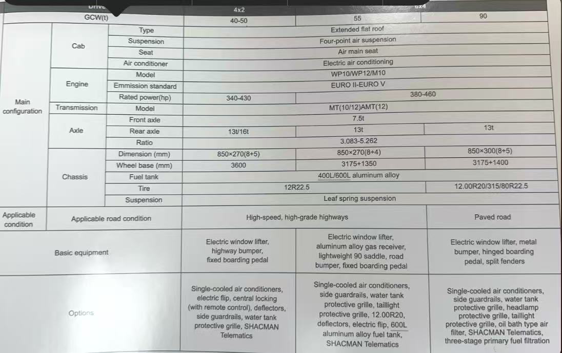 - Osie i zawieszenie: Ośnia przednia przyjmuje technologię 9,5T Man, a tylna oś przyjmuje oś człowieka 13T lub 16T. System zawieszenia przyjmuje sprężynę stalową o wysokiej wytrzymałości, która może wytrzymać wpływ ciężkich obciążeń i zapewnić stabilność i trwałość ciężarówki w skomplikowanych warunkach drogowych.