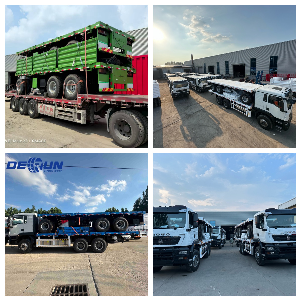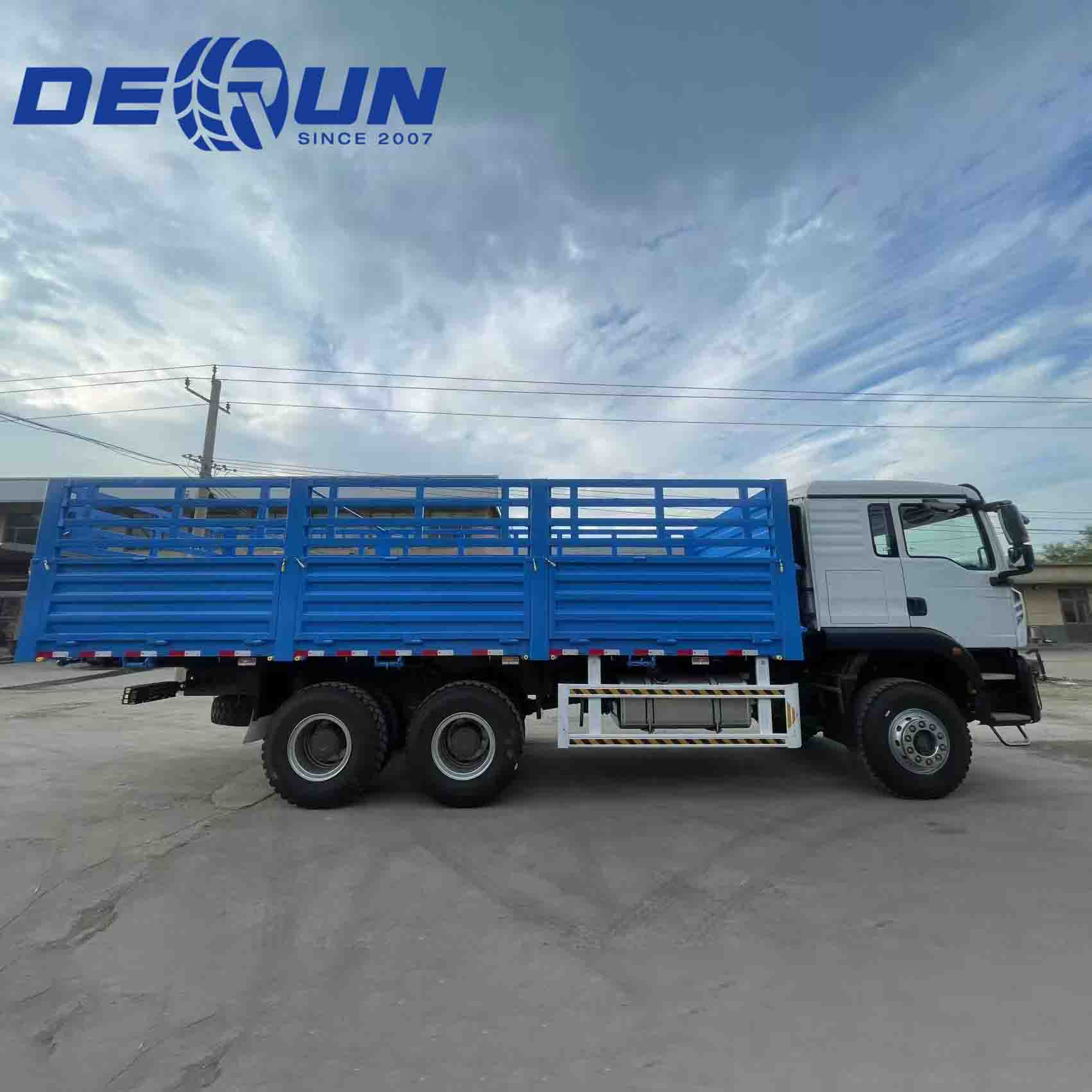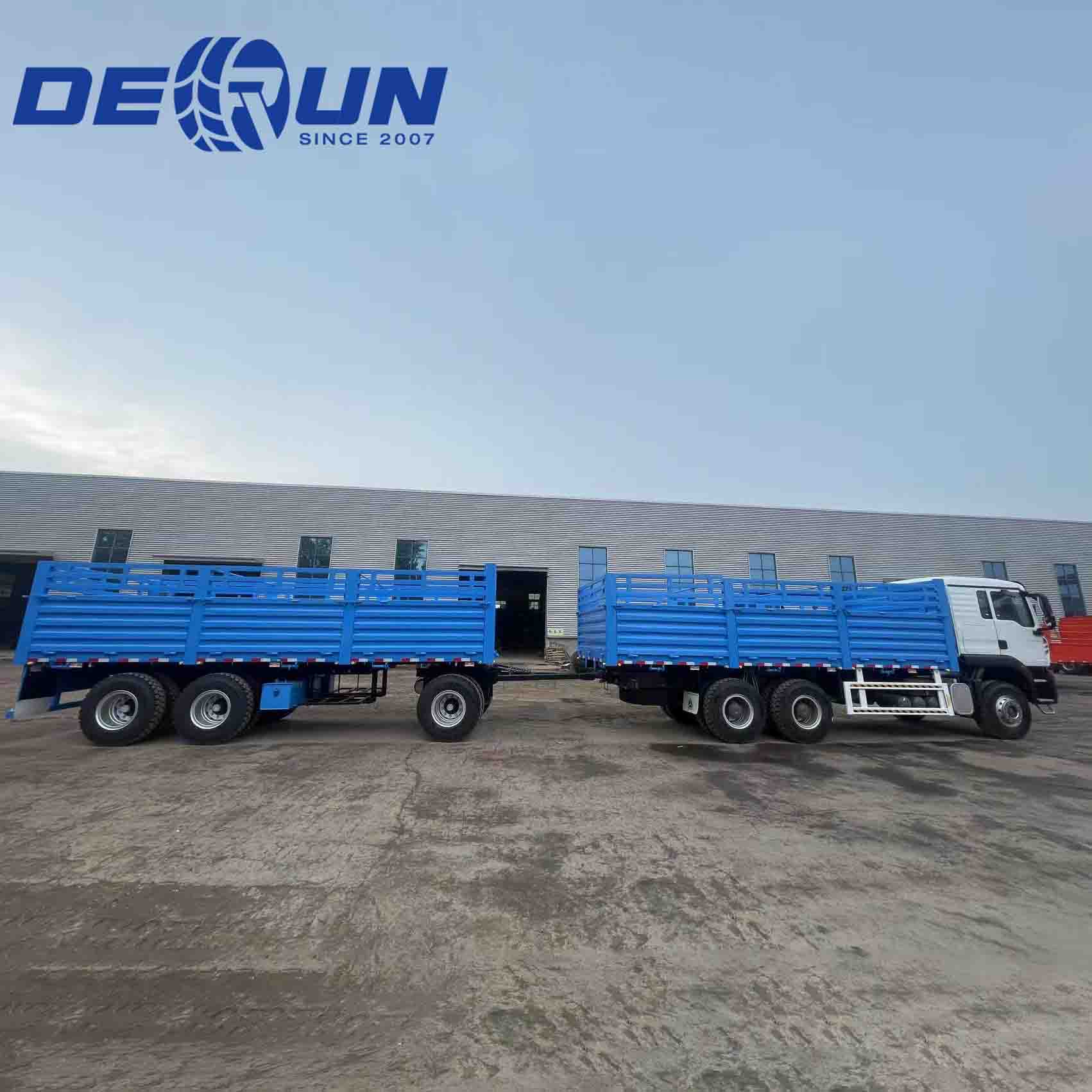 Podwozie ciężarówki ładunkowej ogrodzenia z przyczepą rysunkową wykonaną ze stali stopowej o wysokiej wytrzymałości, z wiązkami podłużnymi utworzonymi w jednym procesie stemplowania i wzmocnionym wewnętrznymi płytami w krytycznych obszarach naprężeń w celu zrównoważenia pojemności obciążenia i sztywności skrętnej; Zarówno ciężarówka, jak i przyczepa używają kombinacji sprężyn wieloletnich i rurowych amortyzatorów, z poprzecznym paskiem stabilizatora z przodu i podnoszącymi poduszki powietrzne z tyłu, zmniejszając zużycie paliwa po rozładowaniu i zwiększając stabilność po całkowitym załadowaniu. Układ elektryczny ciężarówki jest wyposażony w odporne na kurz i piaskowane wiązki przewodów, wzmocnione filtry powietrza i filtry pustynne, aby dostosować się do zakurzonych warunków afrykańskiej pustyni. Wszystkie oświetlenie wykorzystuje źródła LED dla wysokiej widoczności w nocy. Kabina ma czteropunktowy system zawieszenia, siedzenia z powietrza, okna elektryczne, wielofunkcyjną kierownicę i szerokie łóżko dla komfortu na duże odległości. Przyczepa przyjmuje lekką konstrukcję przedziału ładunkowego z wyjmowanymi paneli bocznymi dla łatwego ładowania i rozładunku towarów masowych, takich jak zboże, nawozy i materiały budowlane.