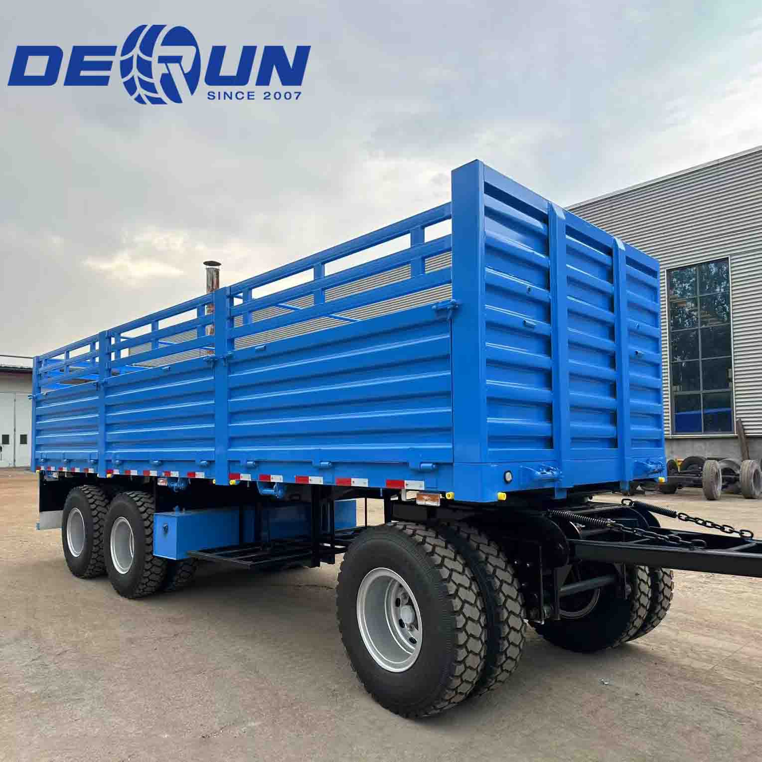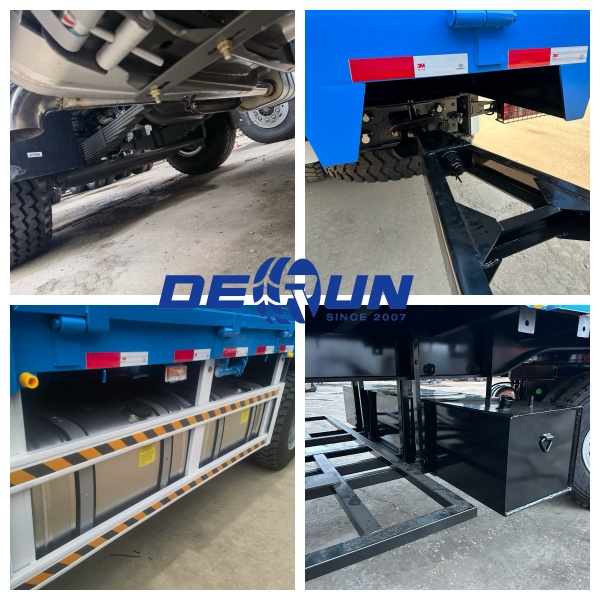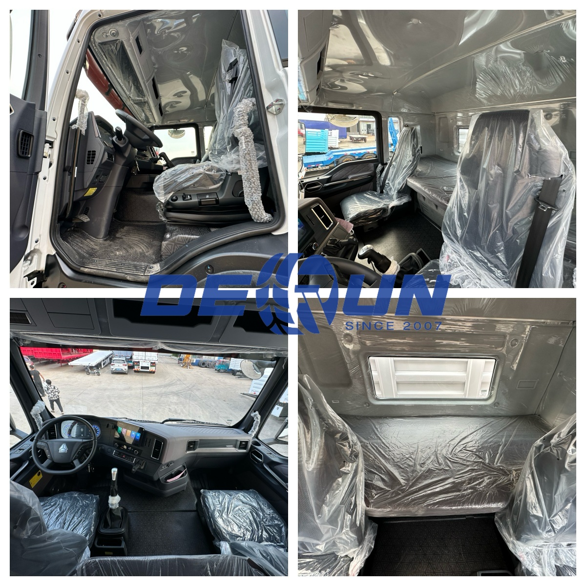 Podwozie ciężarówki ładunkowej ogrodzenia z przyczepą rysunkową wykonaną ze stali stopowej o wysokiej wytrzymałości, z wiązkami podłużnymi utworzonymi w jednym procesie stemplowania i wzmocnionym wewnętrznymi płytami w krytycznych obszarach naprężeń w celu zrównoważenia pojemności obciążenia i sztywności skrętnej; Zarówno ciężarówka, jak i przyczepa używają kombinacji sprężyn wieloletnich i rurowych amortyzatorów, z poprzecznym paskiem stabilizatora z przodu i podnoszącymi poduszki powietrzne z tyłu, zmniejszając zużycie paliwa po rozładowaniu i zwiększając stabilność po całkowitym załadowaniu. Układ elektryczny ciężarówki jest wyposażony w odporne na kurz i piaskowane wiązki przewodów, wzmocnione filtry powietrza i filtry pustynne, aby dostosować się do zakurzonych warunków afrykańskiej pustyni. Wszystkie oświetlenie wykorzystuje źródła LED dla wysokiej widoczności w nocy. Kabina ma czteropunktowy system zawieszenia, siedzenia z powietrza, okna elektryczne, wielofunkcyjną kierownicę i szerokie łóżko dla komfortu na duże odległości. Przyczepa przyjmuje lekką konstrukcję przedziału ładunkowego z wyjmowanymi paneli bocznymi dla łatwego ładowania i rozładunku towarów masowych, takich jak zboże, nawozy i materiały budowlane.