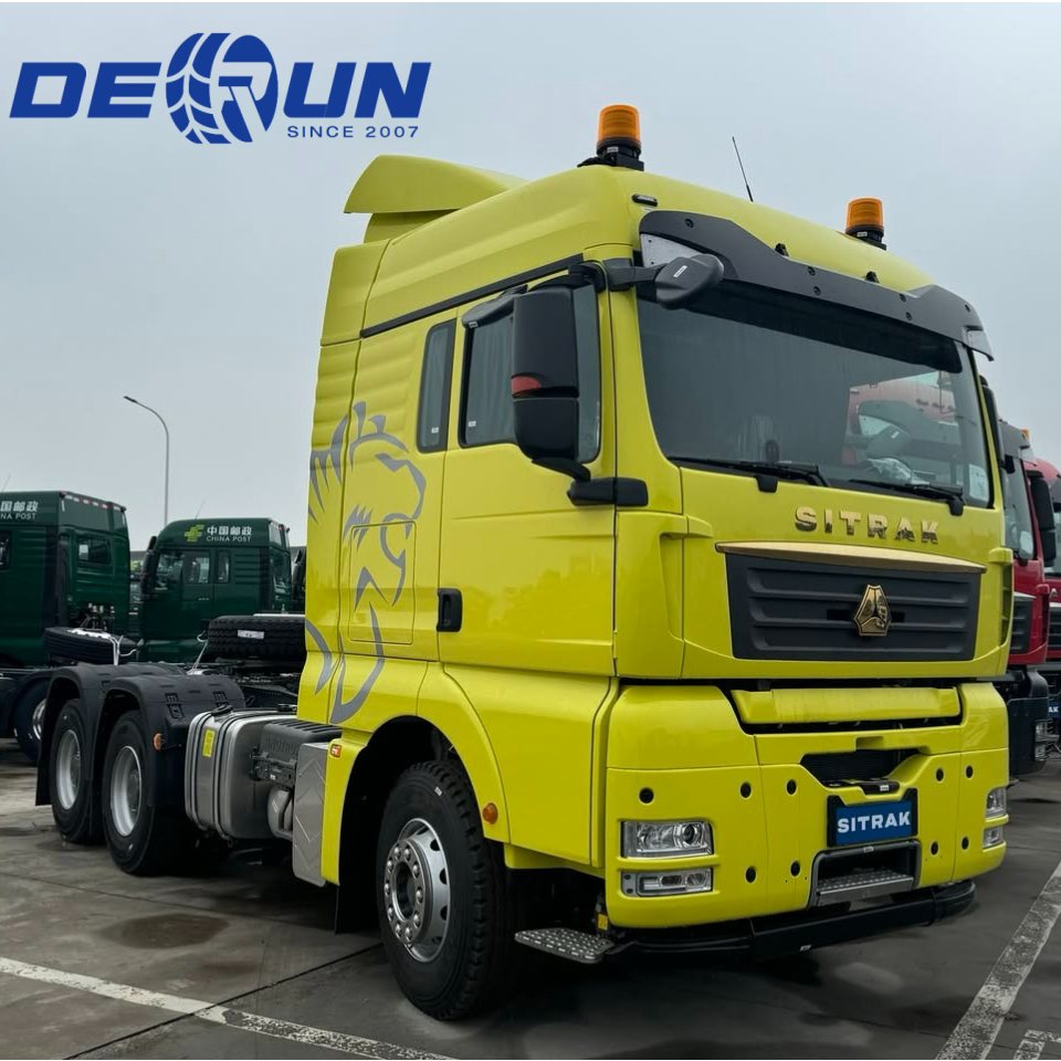 Sinotruk Sitrak 6x4 10 Korek Ciągnik Ciągnika Prime Merver to wysokiej klasy ciężarówka ciężarowa wprowadzona przez China National Heavy Duty Group (CNHTC), która łączy szereg zaawansowanych technologii i jest zaprojektowany do transportu logistycznego na duże odległości i szybkiej prędkości. Jego wygląd przyjmuje usprawnienie projektu, co skutecznie zmniejsza odporność na wiatr i poprawia oszczędność paliwa. Kabina jest przestronna i wygodna, z luksusowym wnętrzem i wieloma przyjaznymi dla użytkownika wzornictwu, aby zapewnić kierowcy i pasażerom wygodne środowisko jazdy.